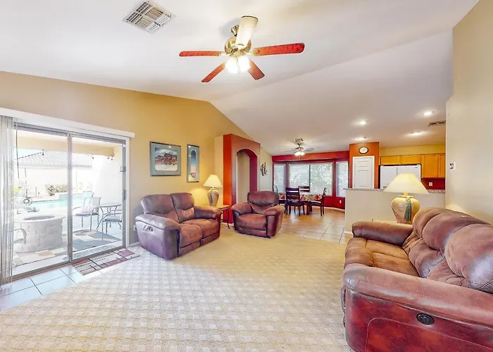 If you feel like dining onsite, there is an equipped kitchen with a fridge, a kitchenware, and glassware. Guests can dine at Senor Taco located in close proximity to the Goodyear accommodation. Phoenix Goodyear airport is reachable within a 15-minute drive from the villa. Good Times In Goodyear Villa has a patio to relax on after a busy day, along with a private pool.
